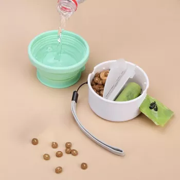 Portable Silicone Dog Travel Bowl with Poop Bag Holder & Snack Storage